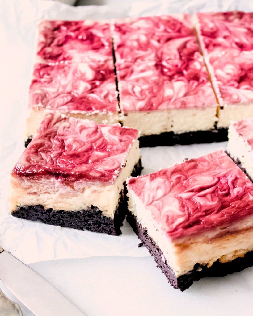 - They cut into neat squares, making cheesecake brownie bars easy to serve and share.
